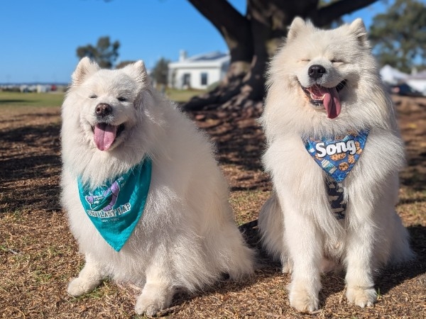 Hi, Our names are John and Song AND we're walking with our superhuman to lend a paw to our furry friends in need.